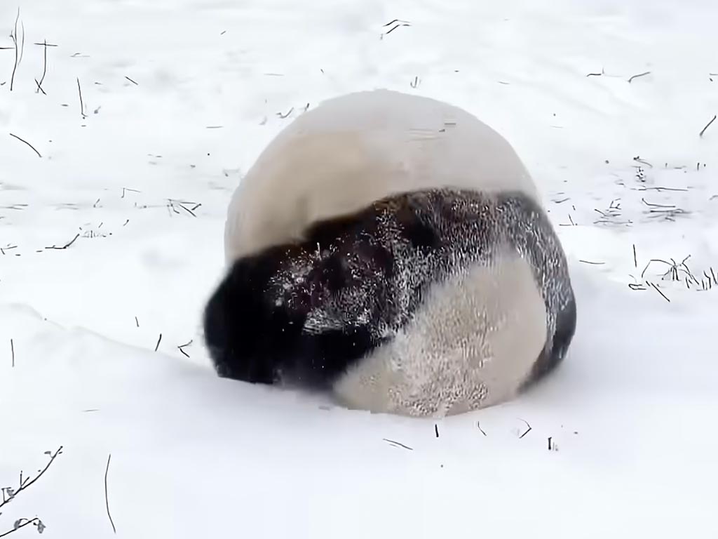 冬ならではの遊びを全身で楽しむパンダさんたち。