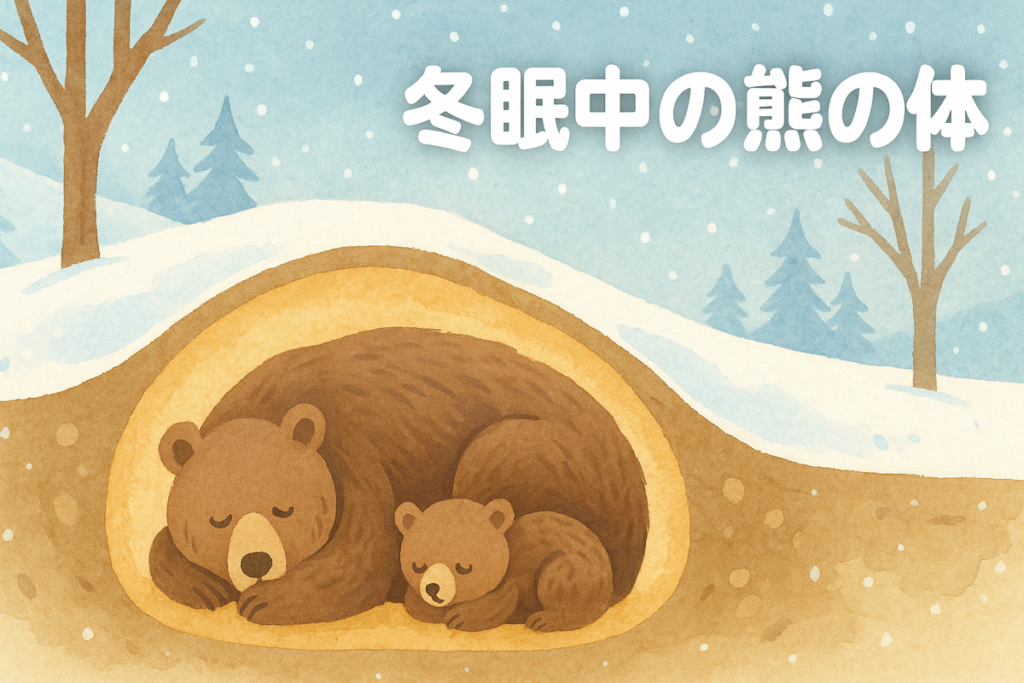 熊は冬眠中、体温を少しだけ下げ、心拍数と呼吸を大幅に減らします。通常の半分以下の代謝状態になり、秋にため込んだ脂肪を少しずつエネルギーへ変換。