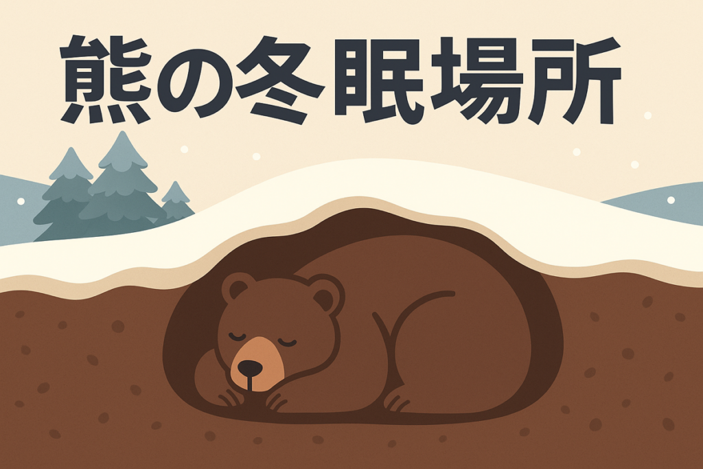 「熊は土の中に潜って眠る」と思われがちですが、実際には完全な地中ではありません。多くの熊は、山肌の斜面や木の根元など、半地下のような空間を利用します。ときには自分で掘ったり、他の動物の古い巣穴を再利用することも。