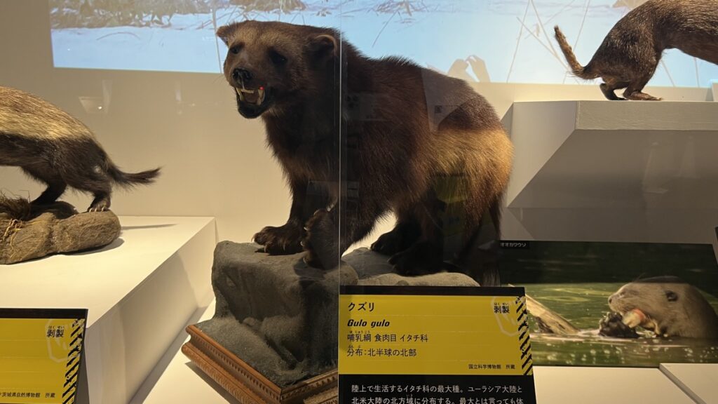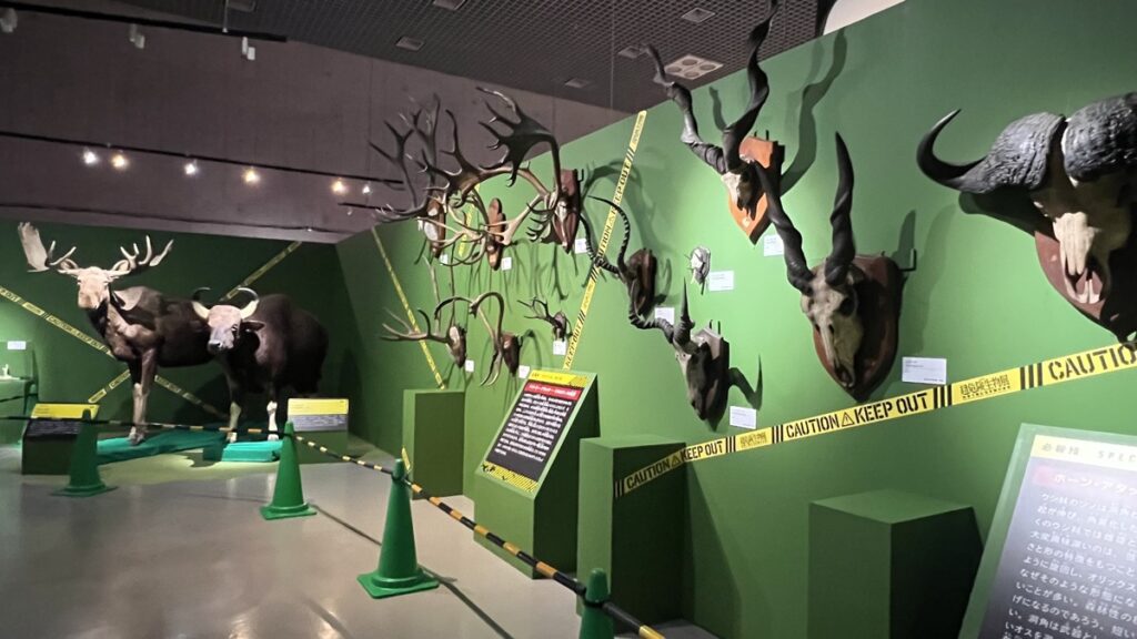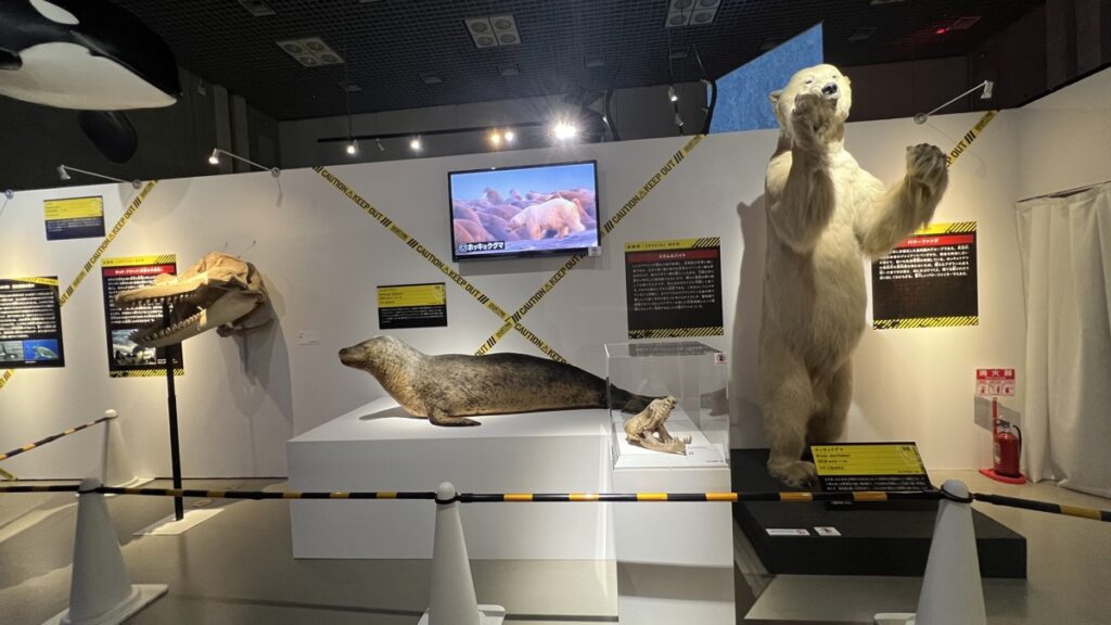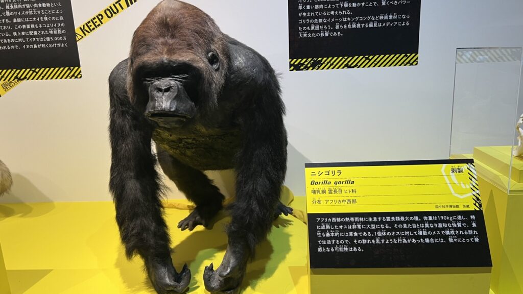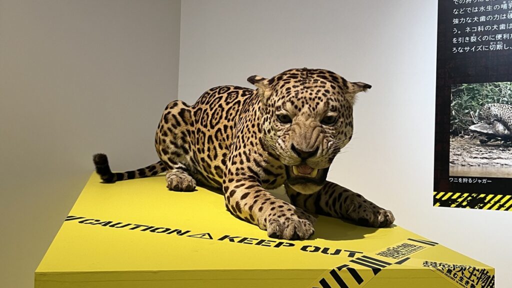 国立科学博物館が所蔵するアフリカゾウの全身骨格や、ミュージアムパーク茨城県自然博物館所蔵のホホジロザメの剥製など、迫力満点の本物の標本展示も見どころのひとつです。