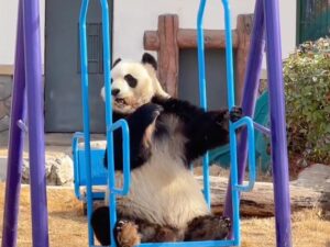 ブランコに揺られて竹をムシャムシャ。優雅すぎるランチタイムに癒やされる -